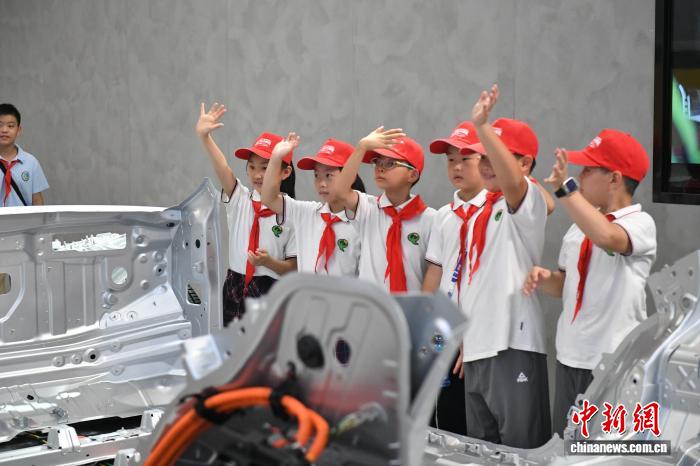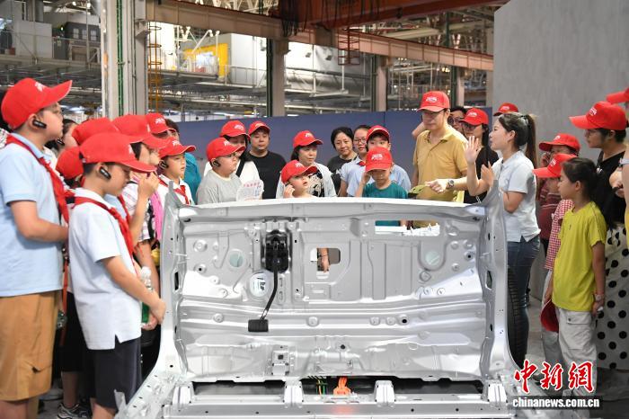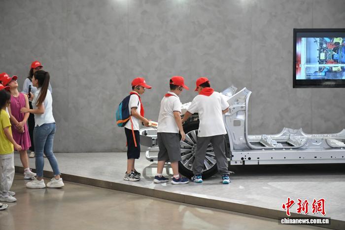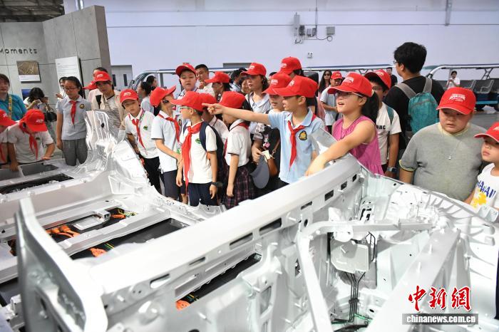 圖為去自齊邦各天的青少年走入蔚去前輩制作開胖1工場,感知新動力汽車智制魅力。中新社記者 趙強 攝