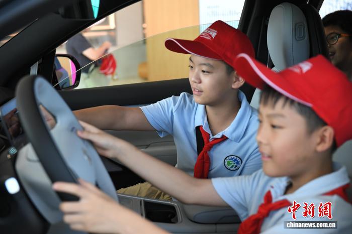 圖為去自齊邦各天的青少年走入蔚去優(yōu)秀制作開胖1工場,感觸感染新動力汽車換電技能。中新社記者 趙強 攝